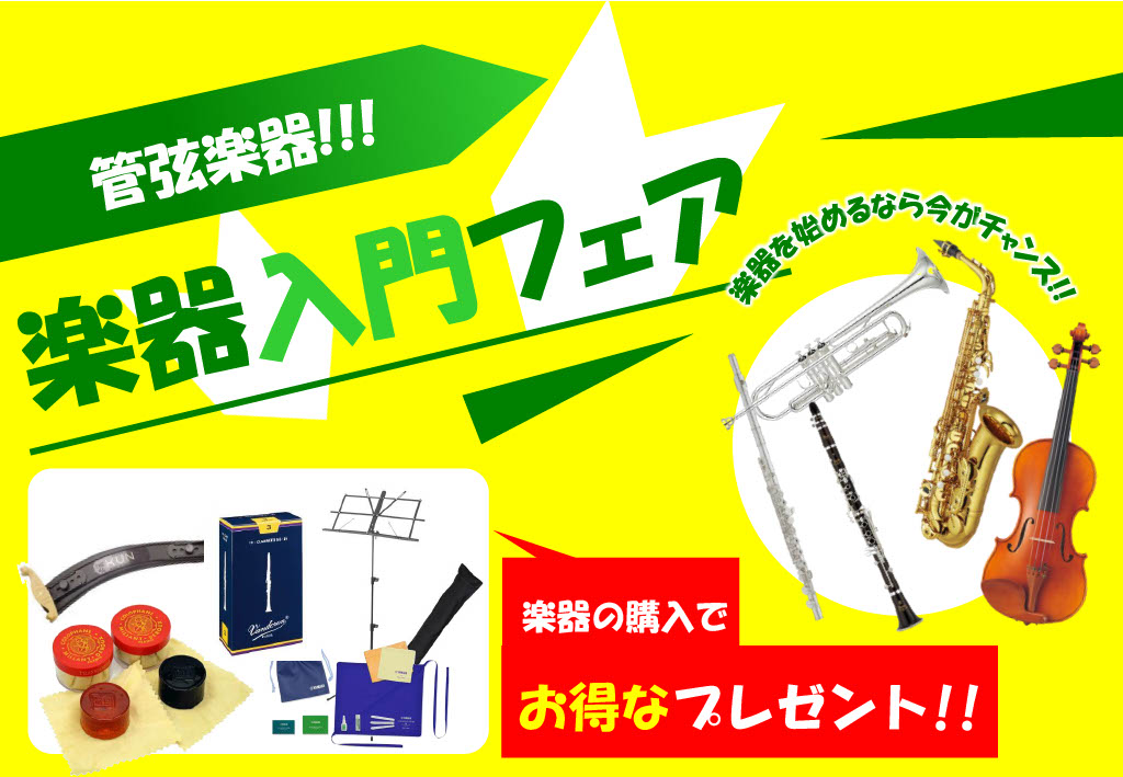 入門フェアに合わせまして、初心者の方が安心して楽器を始められるように